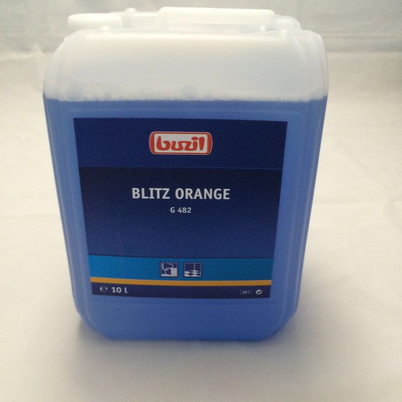 Der Buzil Blitz Orange ist ein neutraler Allesreiniger mit Alkohol und Orangen-Frischeduft für die tägliche Unterhaltsreinigung von wasserbeständigen Materialien, Oberflächen und Bodenbelägen. Er trocknet schnell und streifenfrei und erzeugt einen strahlenden Glanz.