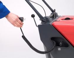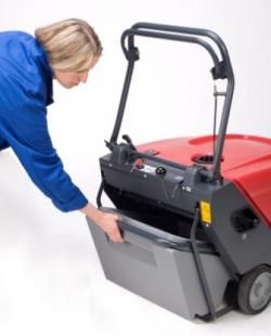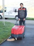 Diese handgeführte Kehrsaugmaschine ist für drinnen und draußen geeignet, es entfernt Schmutz und Staub von allen Böden. Optimale Befüllung des Schmutzbehälters durch das Überkopfwurfprinzip. Die Maschine ist sehr wendig und leichtgängig dank Fahrantrieb von 5 km/h. Batteriebetrieben und ausgesattet mit einem Onboard Ladegerät. Teppichreinigung mit den optional erhältlichen Teppich-Set möglich.