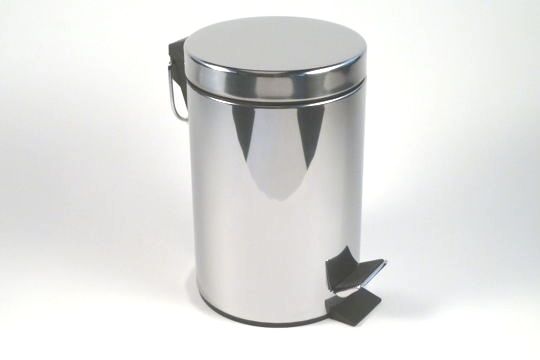 Kleiner Abfallbehälter aus Edelstahl poliert, Fassungsvermögen 5 Liter, mit Kunststoff-Inneneimer, Höhe ca. 29 cm, praktisch für den Toiletten- und Sanitärbereich, in Toilettenkabinen sowie auch für Büro, Haushalt und Schulen